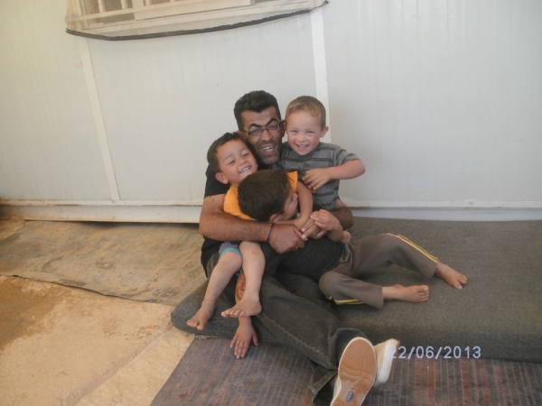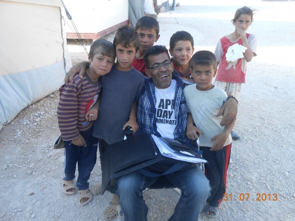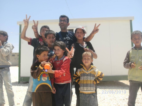 محمود صدقة، ومنذ عامين على اندلاع الازمة السورية، يستقبل يومه واشراقة الشمال المفرقاوي على سماء الزعتري، بوجوه ملائكية تنتظره كما تنتظر الارض الجرداء المطر، ينتظرونه كأبٍ وأخٍ وصديق وطفل لا يبتعد عن أعمارهم فيما هو يلهو معهم ويُحضر لهم الفرح على شكل دمية بأطرافٍ كاملة، فقد ارتعبت مخيلة الصغار بالايدي المبتورة والاقدام المسحوقة تحت الة التخريب ..