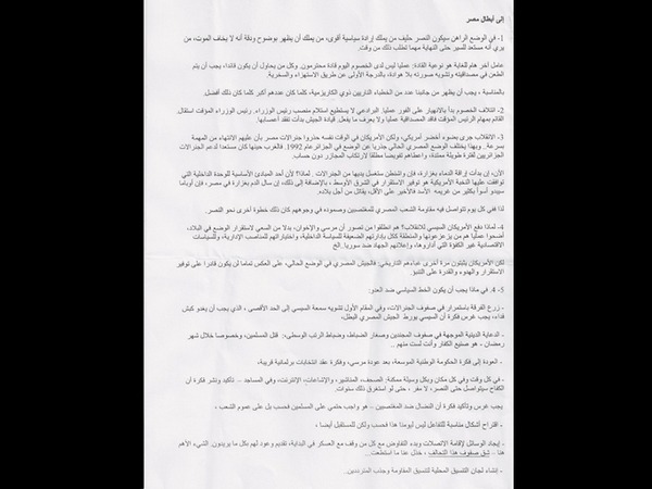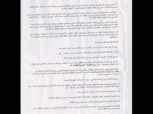 وتمضي الوثيقة في الحديث عن كيفية استعادة 'الوعي الجمعي' بأهداف الثورة المصرية والدعاية باستمرارمن أجل غرس فكرة النضال ضد 'المغتصبين' للسلطة في مصر.