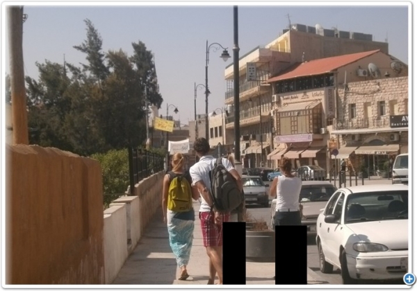 شوهد عدد من السياح الاجانب في شارع السياحة في وسط مادبا صباح اليوم يسيرون شبه عراه منتهكين الاخلاق وحرمة الشهر الفضيل.
