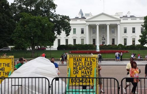 "بوابه الأهرام " شدت الرحال لاستكشاف القصة من أمام البيت الابيض بالعاصمه الأمريكية واشنطن، وكما توضح الصوره فإن أطول وأقوى أعتصام ضرب فى الشوارع السياسيه، هو عباره عن خيمة واحدة لم تتزحح من مكانها منذ الأول من أغسطس 1981 .