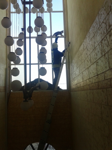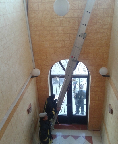 القطة التي دخلت البناية وقفزت من شرفة الدور الخامس الطابق الاعلى الذي يجيئ بموازاة "الثريا" القائمة على مساحة مدخل العمارة، تم رفع سلالم متحركة باتجاه نقطة تمركزها على واجهة العمارة الزجاجية التي وصلتها بعد ان تسلقت "الثريا"، قام احد رجال الدفاع المدني والذي ارتدى لباسا خاصا لتلقف القطة، استطاع الامساك بها الا انها ابدت مقاومة وانزلقت من بين يديه لتصل ارضا وتفر هاربة دون ان يُصيبها اي اذى، وذلك وسط تصفيق سكان العمارة الذين رأوا بتحرك الدفاع المدني لانقاذ قطة لفتة انسانية اولى نباركها ونثمنها .. والله يعطي الشباب النشامى كل عافية.