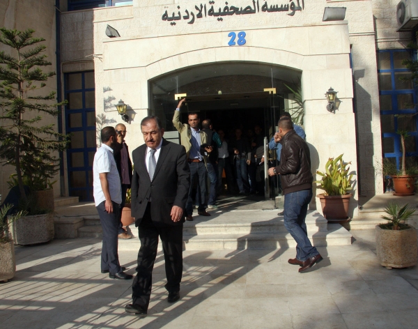 وطالب المعتصمون رئيس مجلس الإدارة المعين مازن الساكت تغير تركيبة مجلس الصحيفة التي تضم عددا من كتاب صحيفة الغد والدستور.
