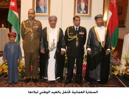أقامت سفارة سلطنة عُمان لدى الأردن مساء يوم أمس الاثنين حفل استقبال بمناسبة العيد الوطني الثالث والأربعين للسلطنة وذلك بحضور القائم بالأعمال بالإنابة المستشار حمود بن عبدالله الوهيبي وأركان السفارة.