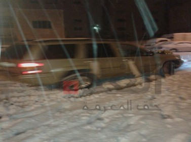 وقال قريب العروسين إنه تم الاستعانة بجرافة لفتح الطريق المغلقة بسبب الثلوج، بعد أن علقت سيارة العروسين ذات الدفع الرباعي على منطقة الدوار الخامس لمدة تزيد على الثلاث ساعات وهي في طريقها لإحضار فرقة الزفة.