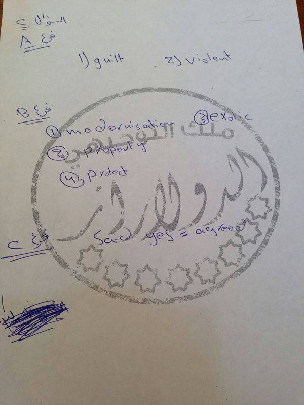 قالت المصادر ان هذه الاجابات كتبت الساعة 11.10 دقائق تحديداً .