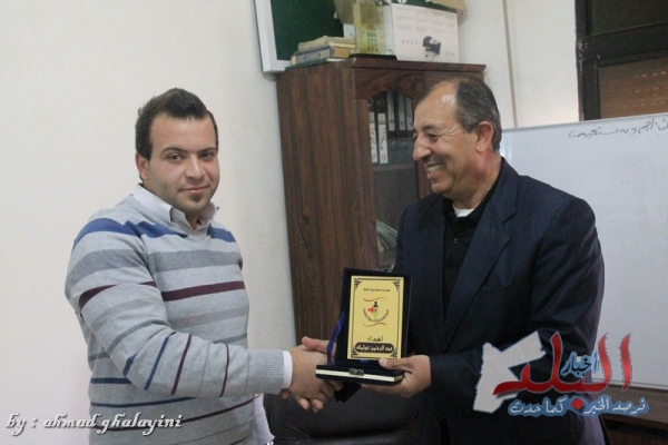 وقد كرم التجمع كل من الشاعر عبدالله الزعبي وعبدالرحمن العواملة بمناسبة تخرجهم وحصولم على شهادات في "البكالوريس" حيث استهلت الإحتفال ثائرة عربيات عضو التجمع بكلمة ترحيبية بالضيوف وباركت للاخوة نجاحهم متمنين لهم المزيد من التقدم والإزدهار .