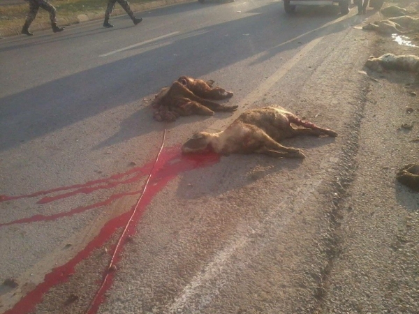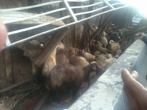 اودى حادث تدهور شاحنة محملة بالاغنام الى نفوق العشرات منها.