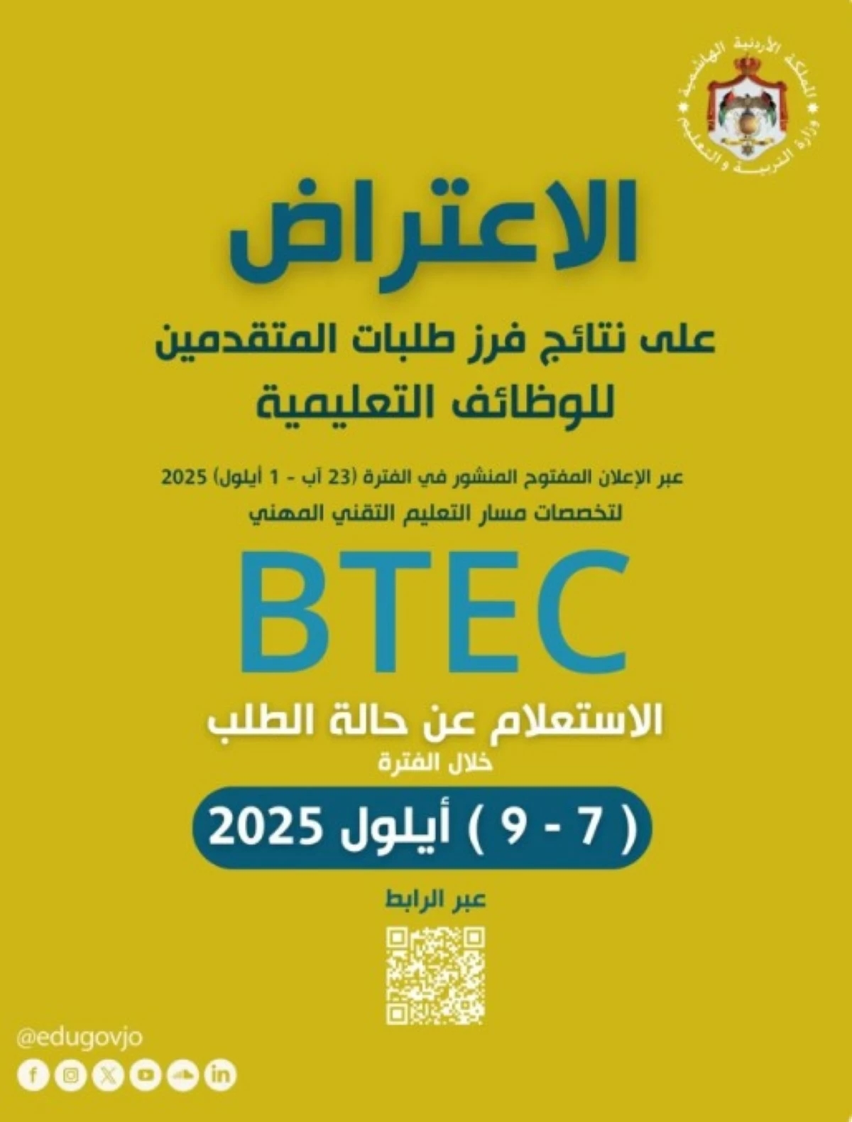 التربية تصدر نتائج فرز طلبات التوظيف في المسار التعليمي BTEC - رابط