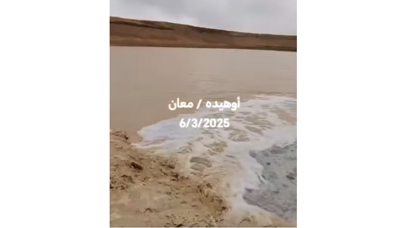 جريان السيول في منطقة أوهيده بمعان وإخلاء مركبات بالرويشد