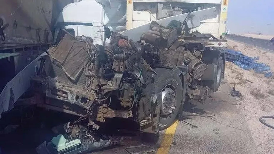 حادث مروع بين شاحنتين على الطريق الصحراوي - فيديو