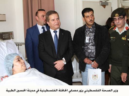 مدينة الحسين الطبية: وزير الصحة الفلسطيني يزور مصابي الحافلة الفلسطينية