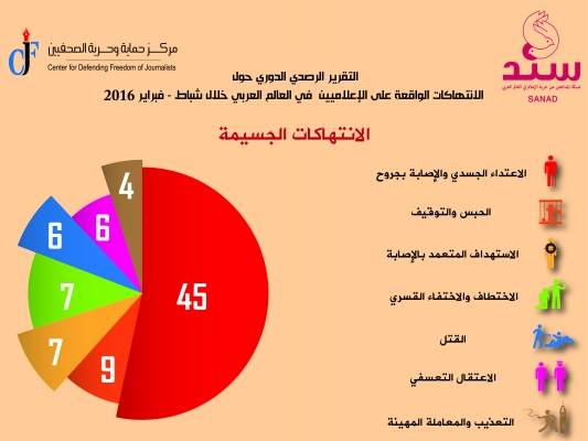 مركز حماية الصحفيين يصدر تقريره الشهري حول واقع الحريات الصحفية في الوطن العربي