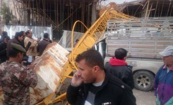 سقوط رافعة في البيادر يحطم 4 سيارات.....شاهد الصور