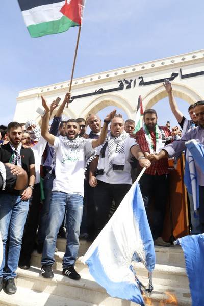 بالصور : وقفة احتجاجية في جامعة العلوم التطبيقية .. والنائب ابو خديجة يحرق العلم الاسرائيلي