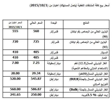 تخفيض الغاز والبنزين ورفع الكاز والسولار