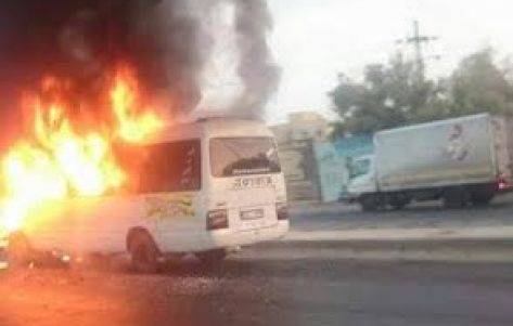 بالصور.. احتراق باص عمومي بالكامل في الزرقاء