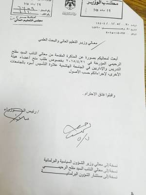 النواب وراء إعادة علاوة التأسيس لموظفي الجامعة الهاشمية - وثيقة