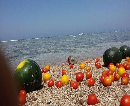 بالصور.. مياه البحر تُلقي بـ"بطيخ وبرتقال وبندورة" بدل الاسماك على شاطئ مصري
