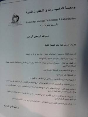 عاملون بقطاع المختبرات الطبية يطالبون بمنحهم حق انشاء نقابة