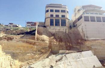 مياه مسبح تطيح بجدار استنادي في أم السماق