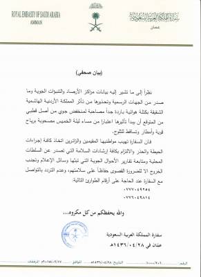 السفارة السعودية في الأردن تحذِّر رعاياها