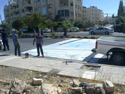 الأمانة تقوم بطمس صورة العلم الصهيوني الذي تم رسمه على احد شوارع طبربور