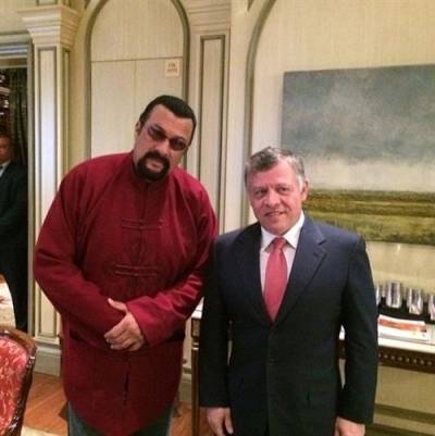 النجم العالمي ستيفن سيجال يستثمر الفرصة ويلتقط صورة تذكارية مع الملك