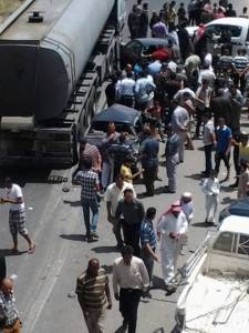 انزلاق صهريج محمل بالنفط على طريق اربد الزرقاء