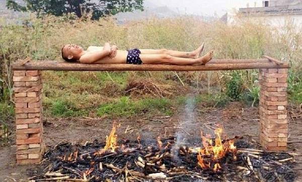 بالصور.. صيني يشوي نفسه على النار للعلاج من السرطان