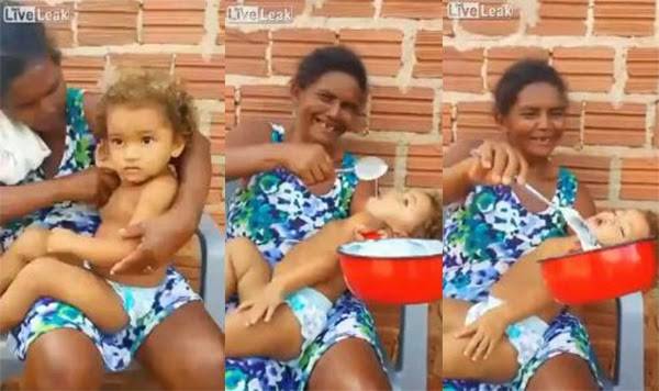 أم تطعم طفلها بطريقة مضحكة ... فيديو