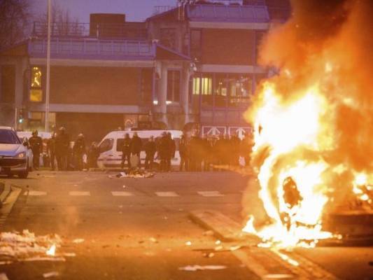 بالفيديو: محتجون يحرقون مركبات في باريس احتجاجًا على الانتخابات الفرنسية
