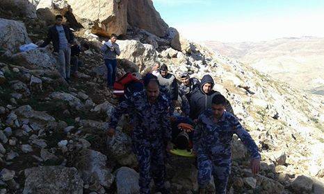 بالصور الدفاع المدني ينقذ مواطنا سقط من مرتفع جبلي في ذيبان