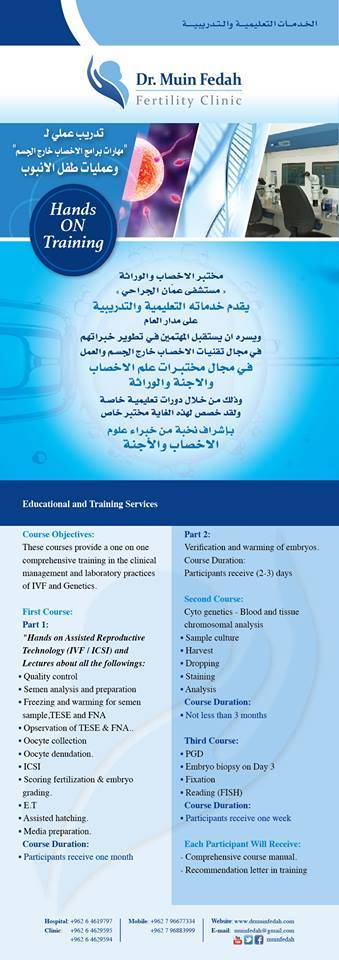 مختبر الاخصاب والوراثة بمستشفى عمان الجراحي يعلن عن دورات تعلمية متخصصه