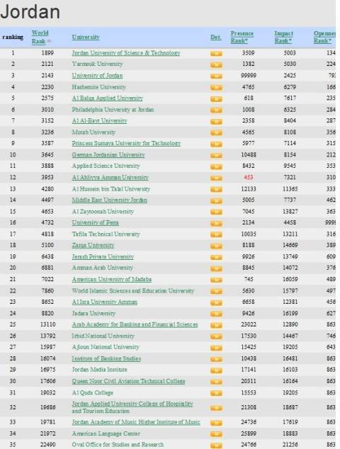 جامعة عمان الاهلية الأولى أردنيا والرابعة عربيا في معيار ( Presence) ضمن تصنيف ويبومتركس العالمي