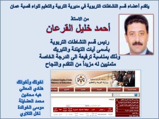 تهنئة وتبريك للاستاذ القرعان بالدرجة الخاصة..