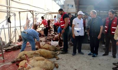 الهلال الاحمر الاردني يوزع الأضاحي على اللاجئين السوريين بدعم من نظيره الكويتي.