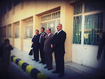 مدير تربية الزرقاء الثانية الدكتور رشيد عباس واللواء المتقاعد عبد الله المومني يشاركان مدرسة عكرمة الثانوية للبنين طابورها الصباحي
