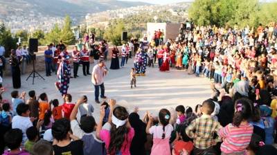 الهلال الاحمر الاردني يقيم احتفالا لأبناء المجتمع المحلي والأسر السورية في عجلون.
