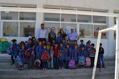 موظفو الضمان يوزعون حقائب مدرسية وقرطاسية على الطلبة الفقراء في ثلاث مدارس بمحافظة الطفيلة