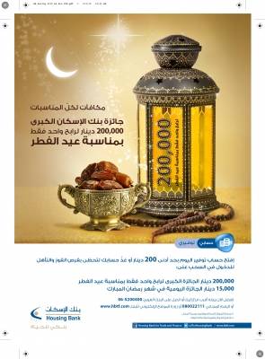 مكافآت لكل المناسبات ..جائزة بنك الاسكان الكبرى 200.000 لرابح واحد بمناسبة عيد الفطر