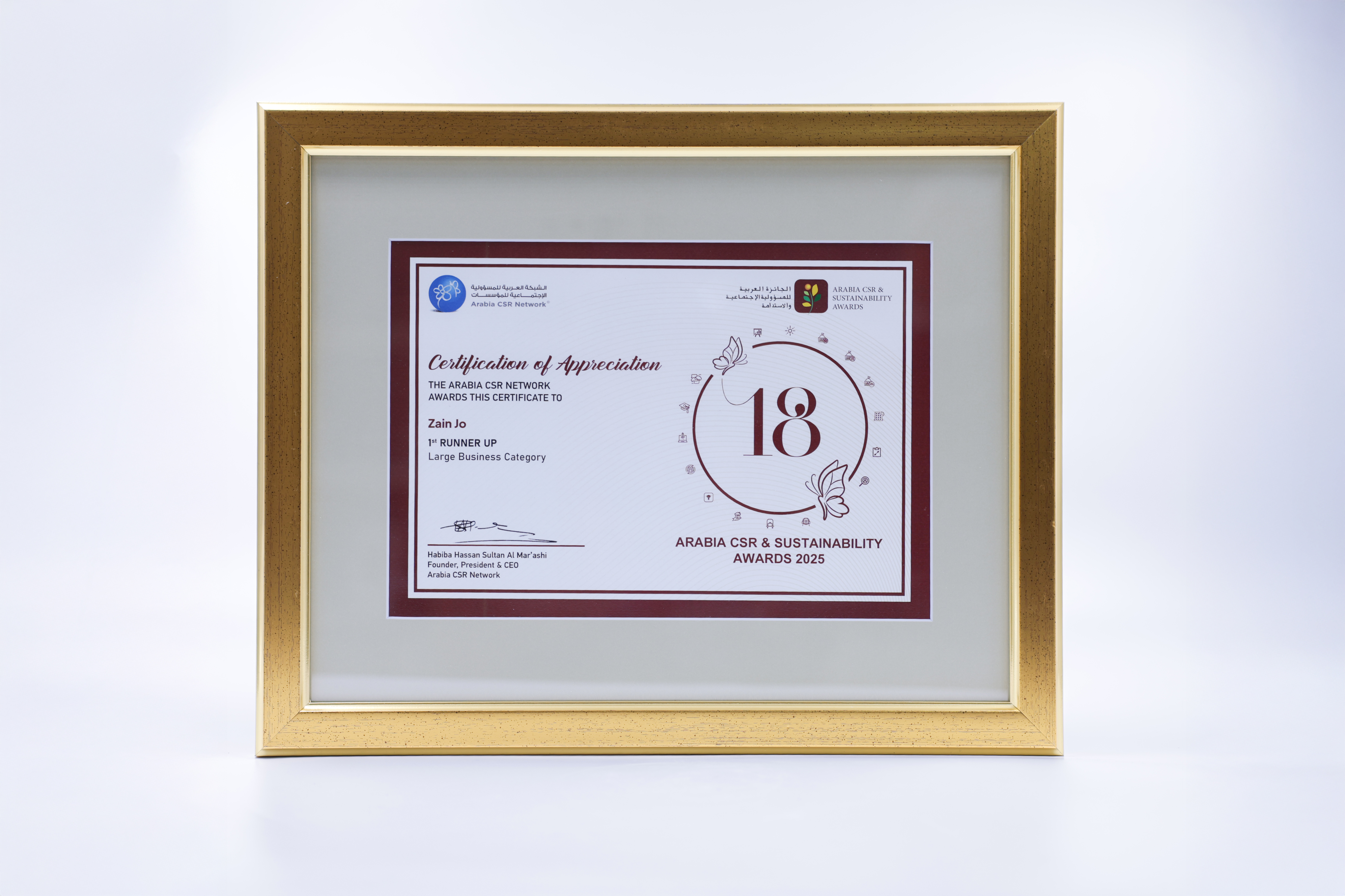 زين الأردن تحصد جائزة الاستدامة والمسؤولية المجتمعية العربية لعام 2025