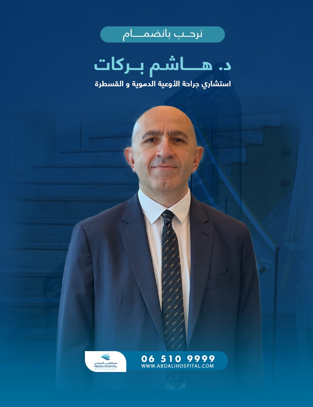 مستشفى العبدلي يعزز فريقه الطبي بانضمام الدكتور هاشم بركات –استشاري جراحة الأوعية الدموية والقسطرة