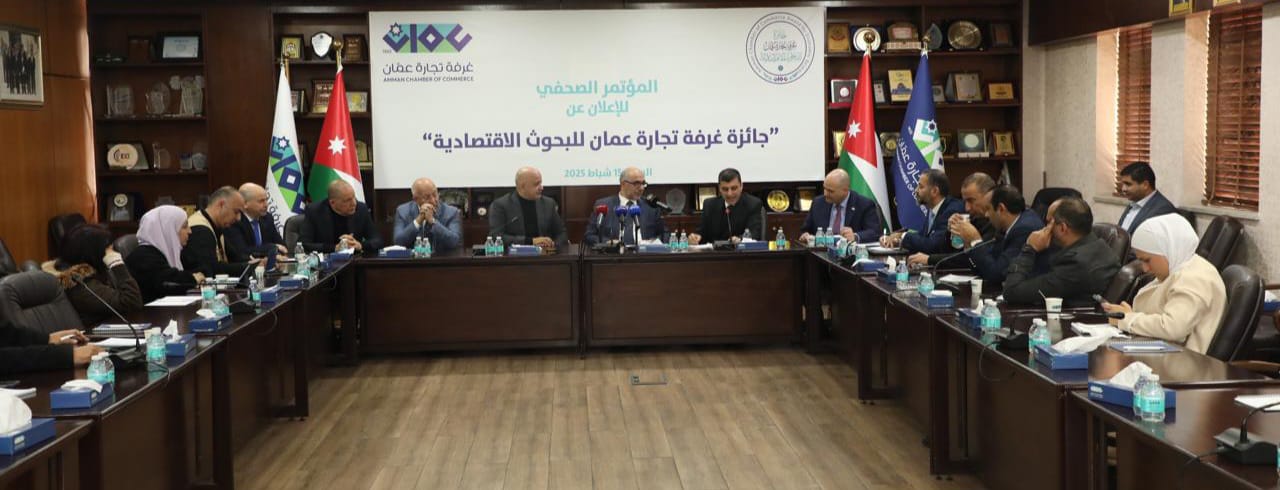 أطلقت غرفة تجارة عمان، اليوم السبت، "جائزة غرفة تجارة عمان للبحوث الاقتصادية"، بهدف تشخيص التحديات التي تواجه الاقتصاد الوطني وتقديم حلول وأقعية لها.