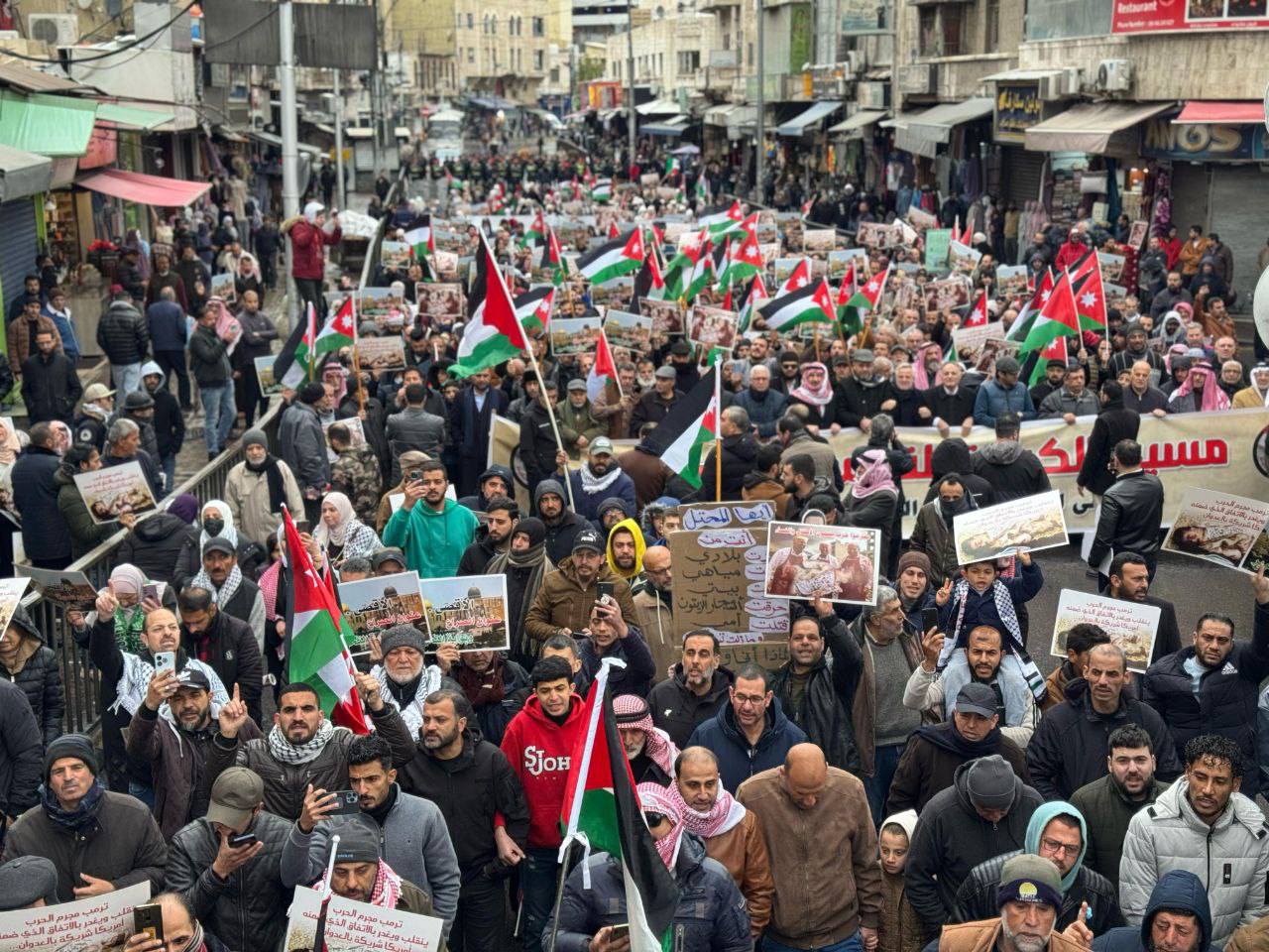وصدحت حناجر المشاركين بشعارات وجّهت فيها التحية لفصائل المقاومة وأكدت دعمها حركة المقاومة الإسلامية (حماس)، ومنها شعار "قالوا حماس ارهابية.. كل الاردن حمساوية". وطالبوا أيضا بوقف كلّ أشكال التطبيع مع العدوّ الصهيوني، مطالبين بـ"إسقاط اتفاقية وادي عربة".
