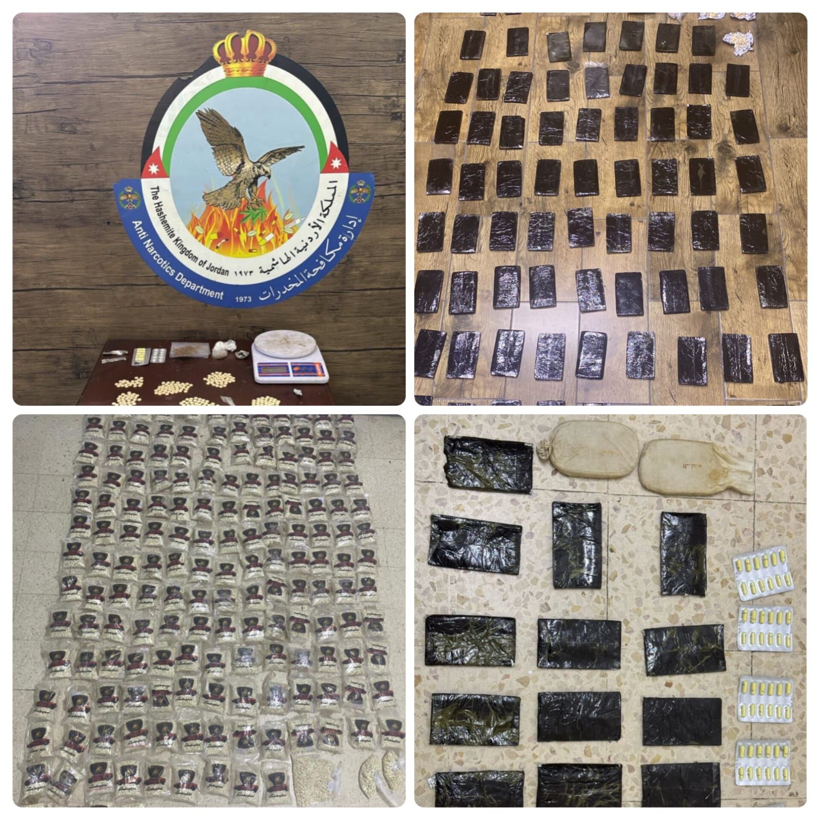 فيما نُفّذت كذلك حملة أمنيّة ضمن اختصاص مناطق جنوب العاصمة أُلقي القبض خلالها على سبعة تجّار للمخدرات ومروجين وضُبط ما بحوزتهم من مخدرات وأسلحة نارية، وفي محافظة المفرق نُفذت كذلك حملة أمنيّة أُلقي القبض خلالها على خمسة من التجار والمروجين والمطلوبين وضبط بحوزة أحدهم 4 كغم من مادة الحشيش المخدرة .