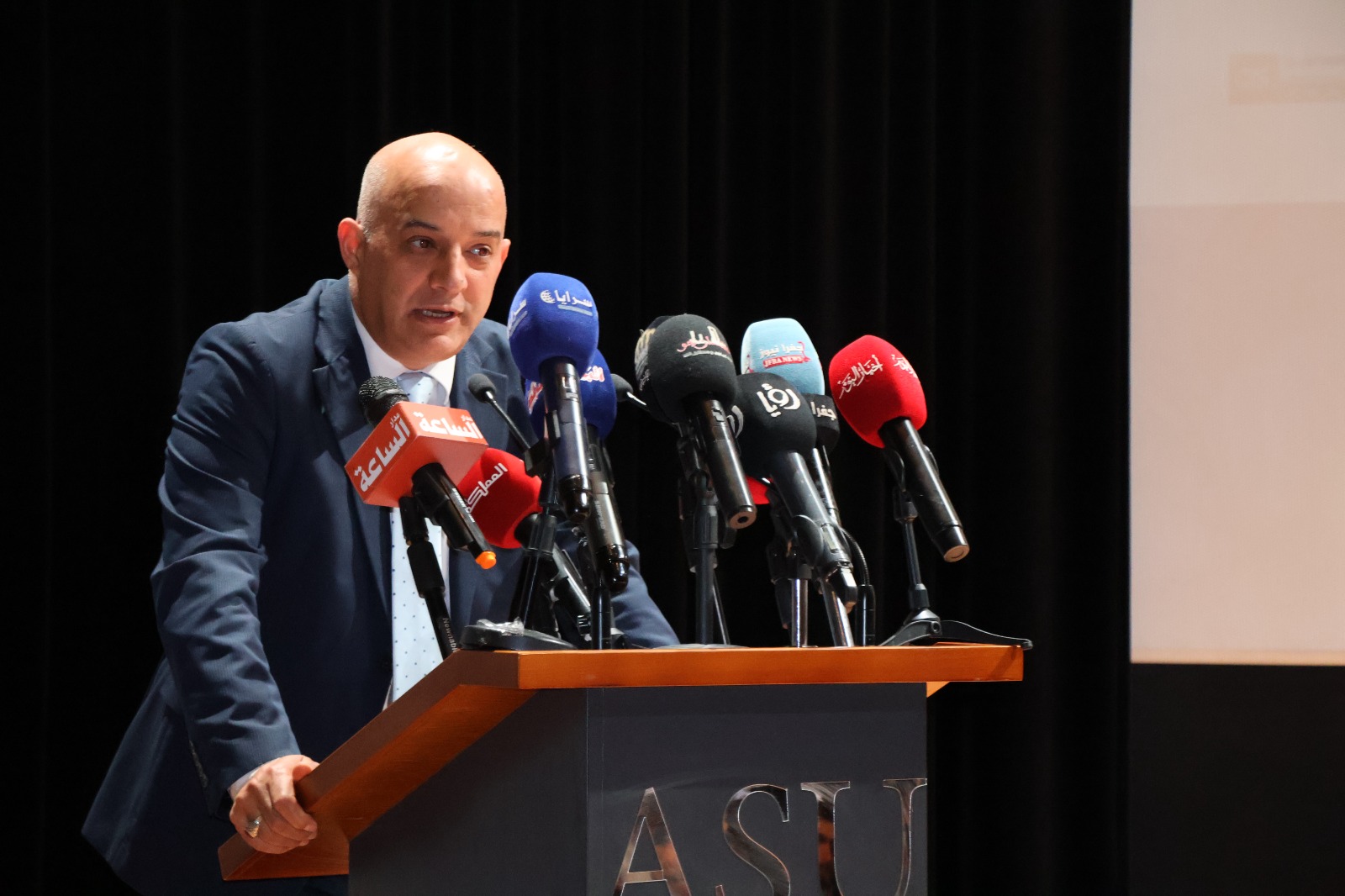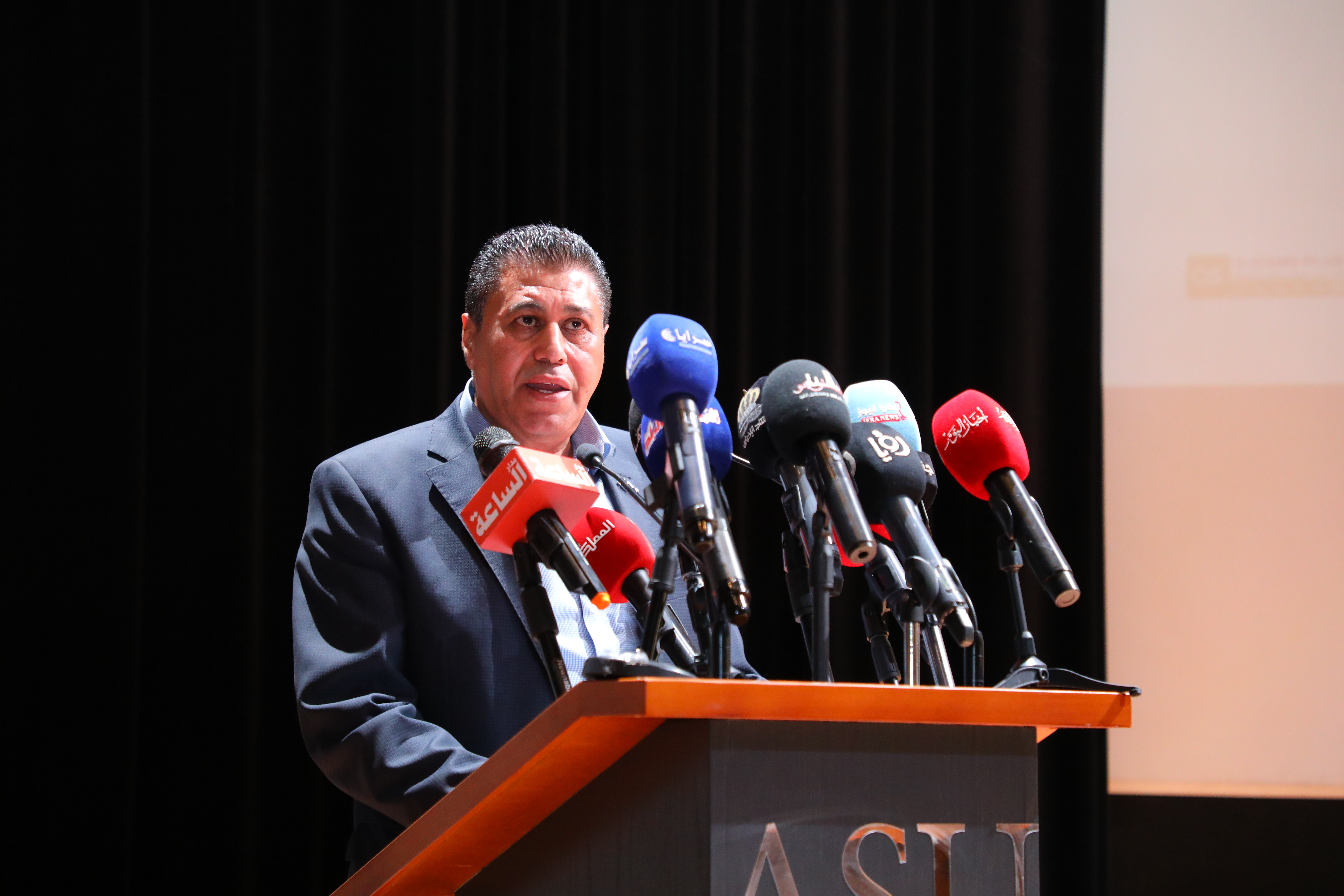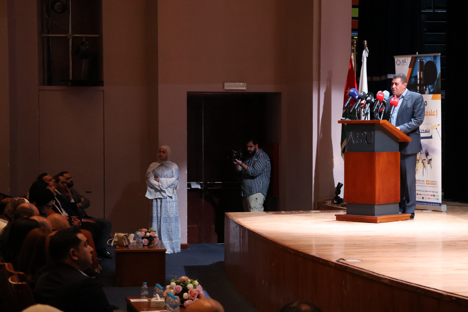 وألقى الدكتور مهند مبيضين كلمة قال فيها، إنَّ المسابقة جهد كبير يترك أثرًا كبيرًا على الطلبة والوسط الإعلامي وهو دور عظيم تقوم به جامعة العلوم التطبيقية وفكرة ريادية في الكشف عن مواهب أردنية هم نواة الدفاع عن المشروع الأردني في الإنسانية والثبات وبناء الأوطان.