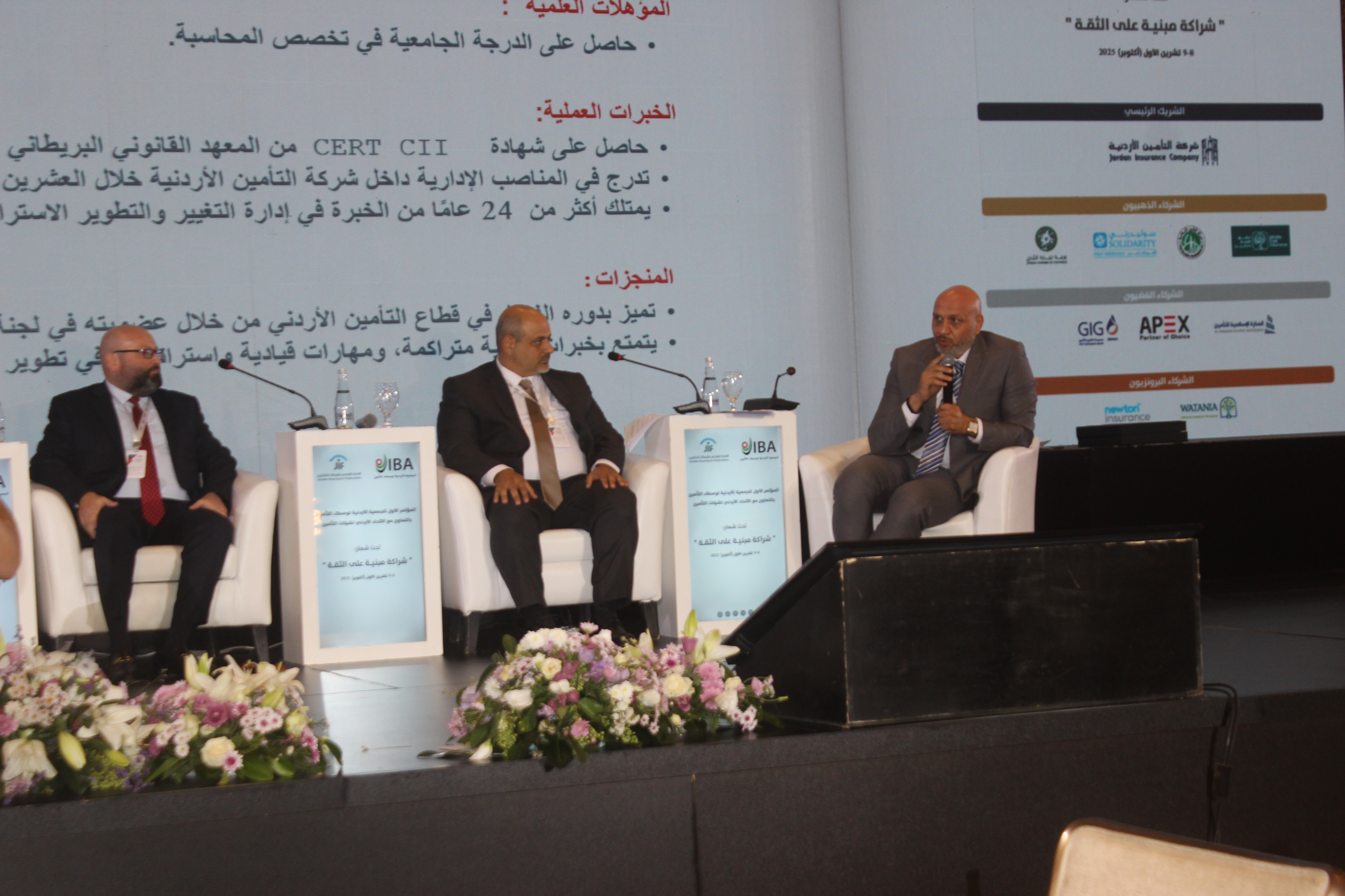 اختتم المؤتمر الأول للجمعية الأردنية لوسطاء التأمين أعماله بعقد الجلسة السادسة والأخيرة التي حملت عنوان "الكوارث الطبيعية وتغير المناخ”، والتي ترأسها عامر العمري، أمين سر الجمعية الأردنية لوسطاء التأمين، بمشاركة كل من عيسى سميرات، مساعد المدير العام لشؤون تأمينات الحريق والحوادث العامة والهندسية، ومحمد الباسطي، مساعد المدير العام للتأمينات العامة في شركة التأمين الأردنية، ومحمد أبو جابر، مدير دائرة التأمين البحري في شركة المنارة الإسلامية للتأمين.