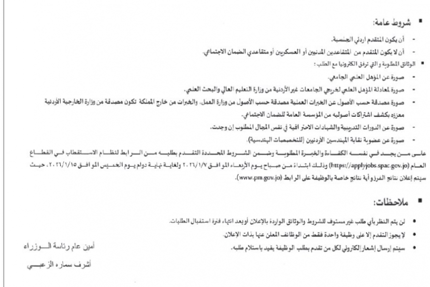 رئاسة الوزراء تعلن عن حاجتها لتعبئة شواغر وظيفية