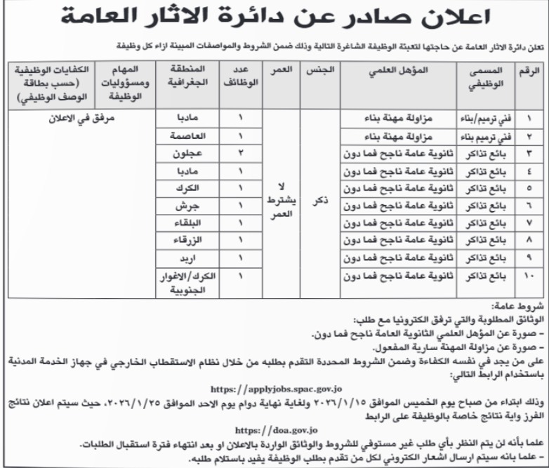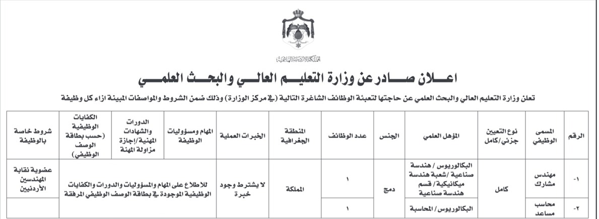 اعلنت دوائر حكومية، اليوم الثلاثاء عن حاجتها لتعبئة وظائف شاغرة.