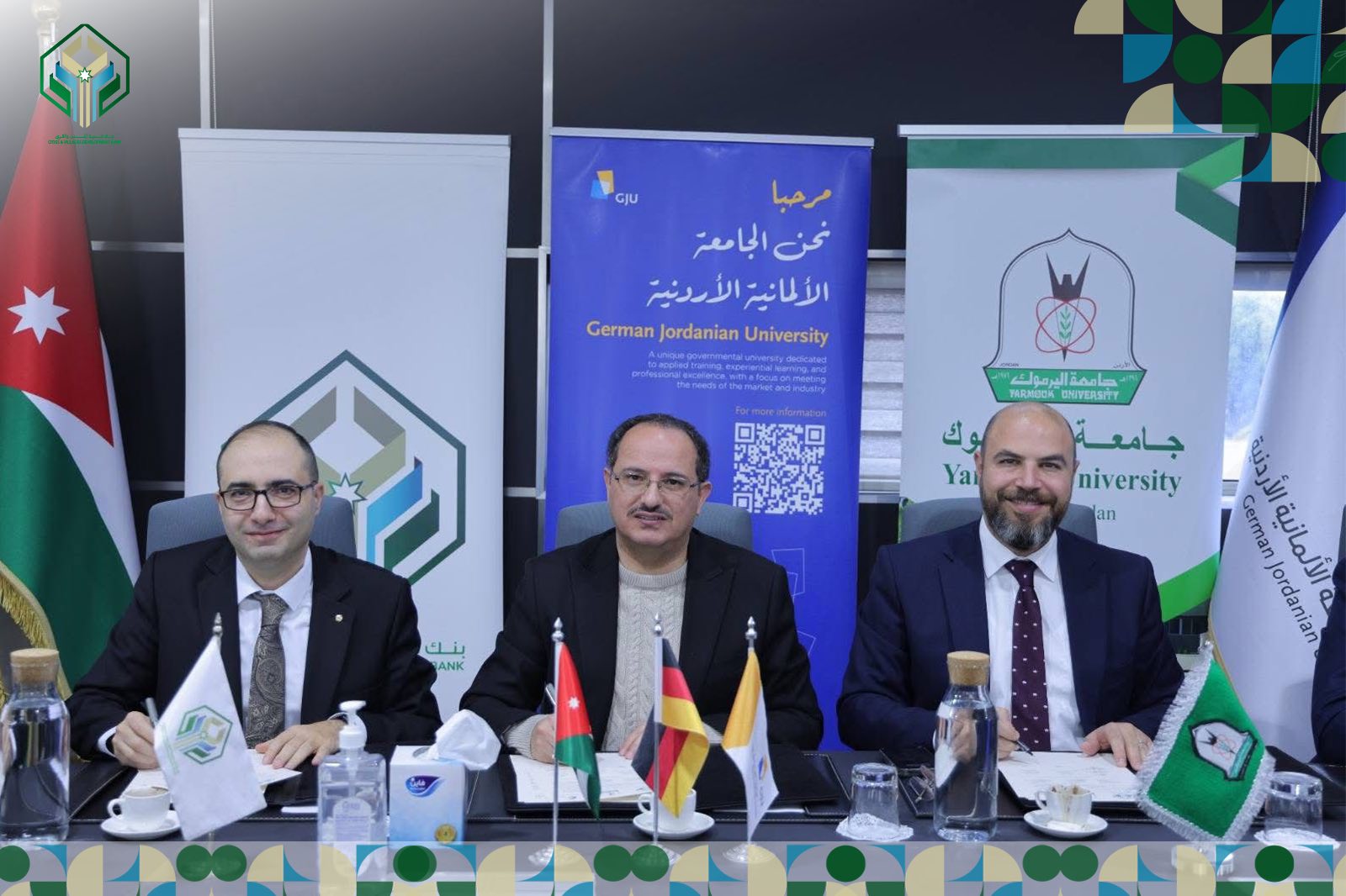ووقع المذكرة كل من عطوفة مدير عام بنك التنمية الدكتور وسيم الحداد، ورئيس جامعة اليرموك الأستاذ الدكتور مالك الشرايري، ورئيس الجامعة الألمانية الأردنية الأستاذ الدكتور علاء الدين الحلحولي، حيث نصت على دراسة إمكانية التعاون في استقطاب المشاريع المحلية والدولية، وإعداد مقترحات لمشاريع مشتركة في المجالات الأكاديمية والعلمية والبحثية والتدريبية، إلى جانب التعاون في مجالات الابتكار، ونقل التكنولوجيا، والريادة، وترسيخ ثقافة الشركات الناشئة، ودعم حاضنات الأعمال، وبناء قدرات الكوادر، وتطوير الأفكار الإبداعية في المجالات التقنية والمهنية والأكاديمية.